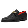 Step into sophistication with these premium men’s loafers, crafted from crocodile-embossed leather for a bold, luxurious finish. A gold bit detail adds a refined touch, while the soft Lycra lining ensures a smooth, snug fit. Designed for all-day comfort, the cushioned insole pairs with a lightweight stitched sole and a rubber outsole that delivers reliable grip. Perfect for elevating both formal and smart-casual looks.