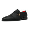 Crafted from Grainy leather, this loafer features a stylish weave strap with a gold ornament, perfect for formal and dressy occasions.